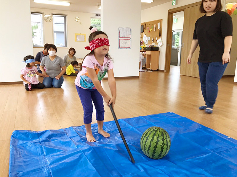 「視覚機能」の訓練をするために専門の先生に来て頂き、映像をとらえるための眼球運動、見たものを説明する認知能力、見たものに合わせて体を動かす能力を高めるトレーニングをしています。体幹作り、ルールを守る、集団指示を聞く、などたくさんの効果を得られています。